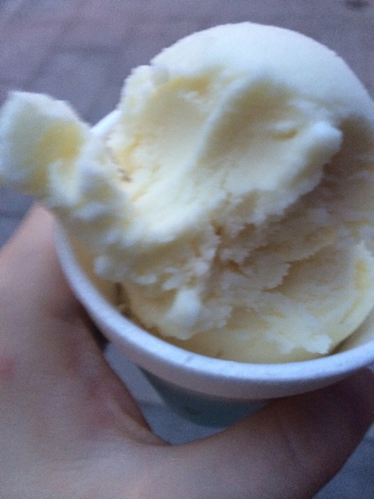 This is somewhere between being ice cream and a snow cone. It is often sold on the street, but looks a bit sketchy that way. Sold in a shop, though, it is quite good. This one is tres leches flavored.