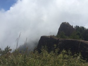When I reached the top, I was surprised to see a power generator of some sort right by the summit, but there is still a nice platform to enjoy the view. It was really foggy today around the mountain, but that made everything more mysterious.
