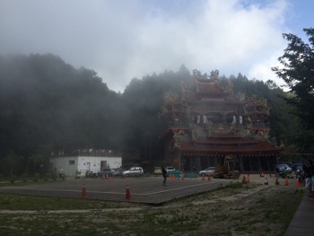There is a temple in the park, and the fog even started rolling down around that!