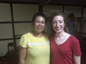 Next came our homestay in a Hmong village outside of Vang Vieng. We all stayed in pairs in different houses with various families. Our host mom was Mama Anna. Even though she does not speak much English, we were able to communicate with her through pictures, body language, and very simple English. She has five grandchildren, and we met three of them, who enjoyed taking pictures and videos on our phones. It was interesting to see the inside of a Hmong house. It was very simple, but had everything you need. It did have a bathroom inside the house with a shower head, and the toilet was flushed by scooping water from a bucket into the toilet bowl. There were a few couches in the living room, but not a lot of excess decoration. In the front of house was a store.