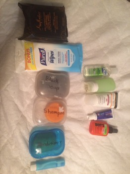 I like to limit the liquid toiletries I take even if I check my baggage (where the size limitations don’t apply) because a lot of times the pressure in the airplane makes liquids explode. So instead of dealing with a mess, I bring as much solid as possible. I am trying out the Lush shampoo and conditioner bars on this trip–everyone says good things about them and it is another way to limit liquids. Although hotels provide shampoo most of the time, I have found this is not always the case in other countries. Also, my hair is vey curly, so I can’t use just any old shampoo. I also have a sunscreen stick (not pictured) that I will bring, but I had to get special sunscreen for my face because the stick made my face break out too much. Unfortunately, the face sunscreen does not come in sticks yet. Also in my liquids, I am bringing hand sanitizer, toothpaste, hair cream, and bug spray (with DEET–malaria is pretty prevalent in Myanmar).