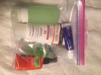 Here are all my liquids, nicely packed in the regulation quart-sized bag!