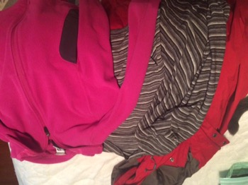 For jackets, I definitely need a rain jacket because it will probably be raining every day while I am in Myanmar. I don’t need a lot of warm layers though since, as I said, it is pretty hot and humid there right now! I am taking the Smart Wool cardigan in th middle of the picture. I just bought it so I don’t know if this is true, but it is supposed to be warm, yet lightweight and breathable and not retain odors. I will wear that on the plane and probably anywhere where there is air conditioning. I have decided against taking the fleece because it seems like it will just take up space.