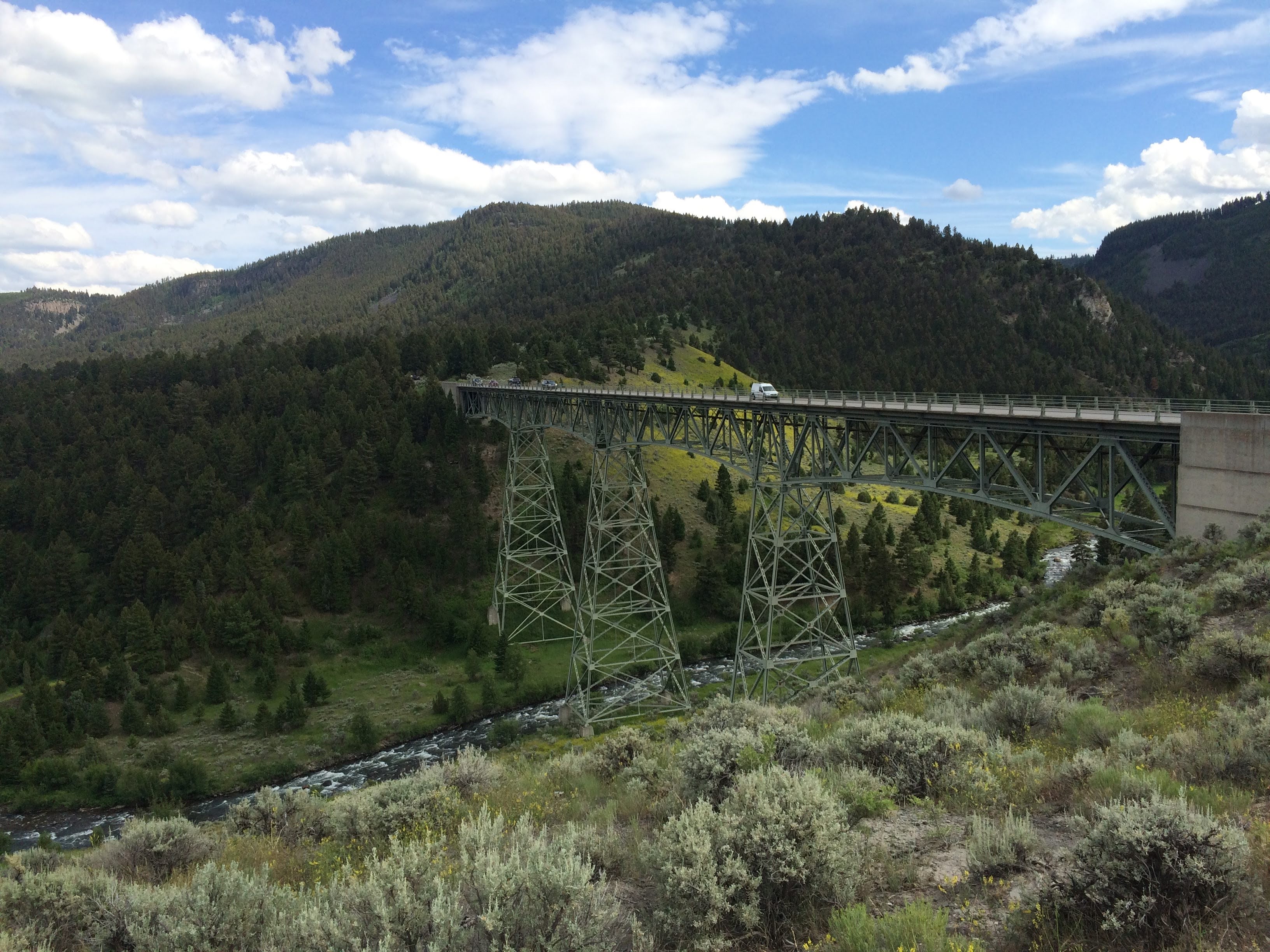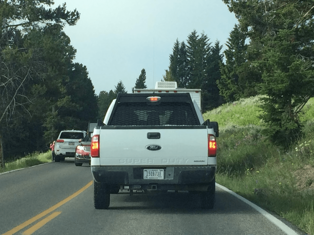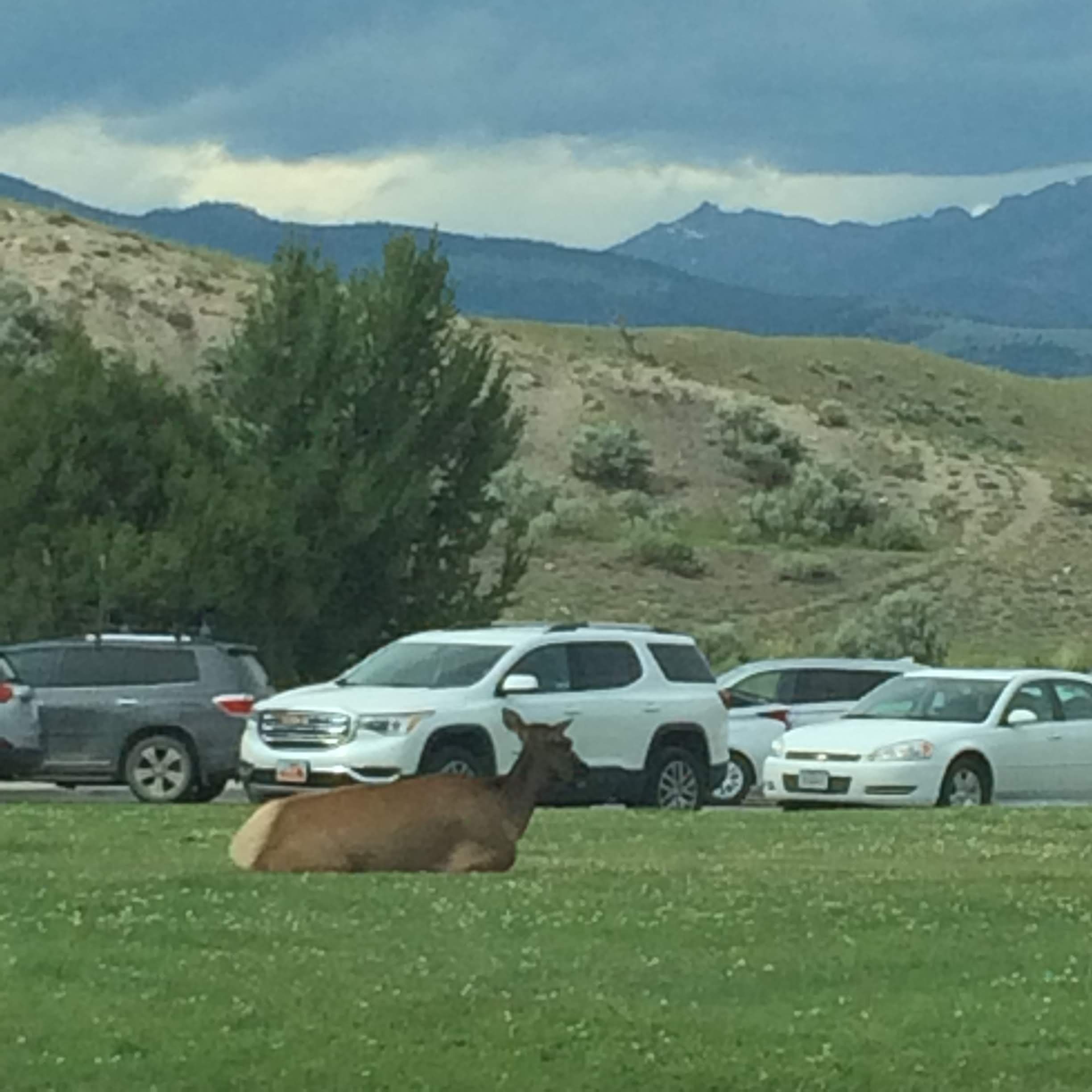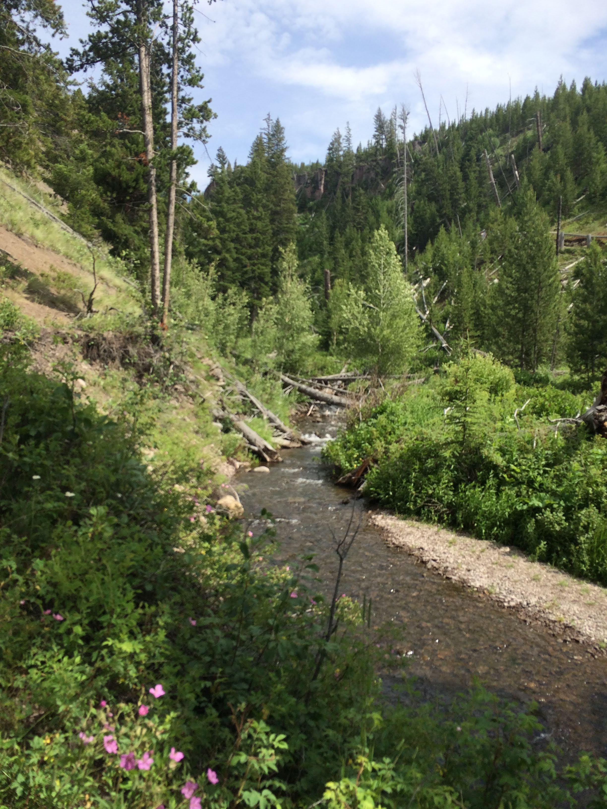 Finally, it was time to head towards the North Entrance, and out of the park. We did stop for photos along the way, including a stop at the petrified tree (which Ryan thought was hilarious) and a short hike where we viewed a lot of the wild sage and wildflowers. We intended to stop at Mammoth Hot Springs before heading out, but it was extremely crowded in that parking lot, and we decided if we wanted to make it back for the block party in Bozeman, we had better head out instead. However, we have a good sighting of a couple of hilarious elk as we left (which we originally thought were moose).