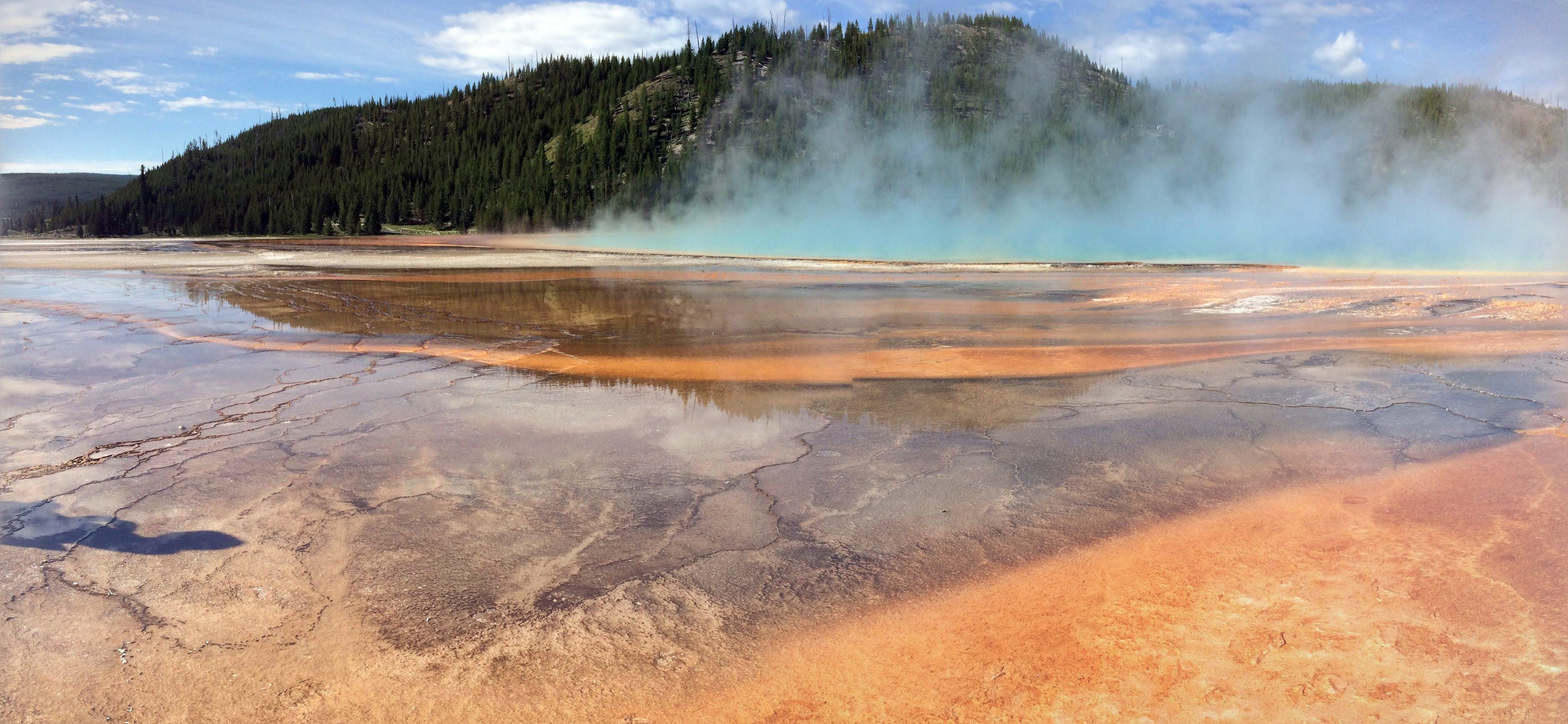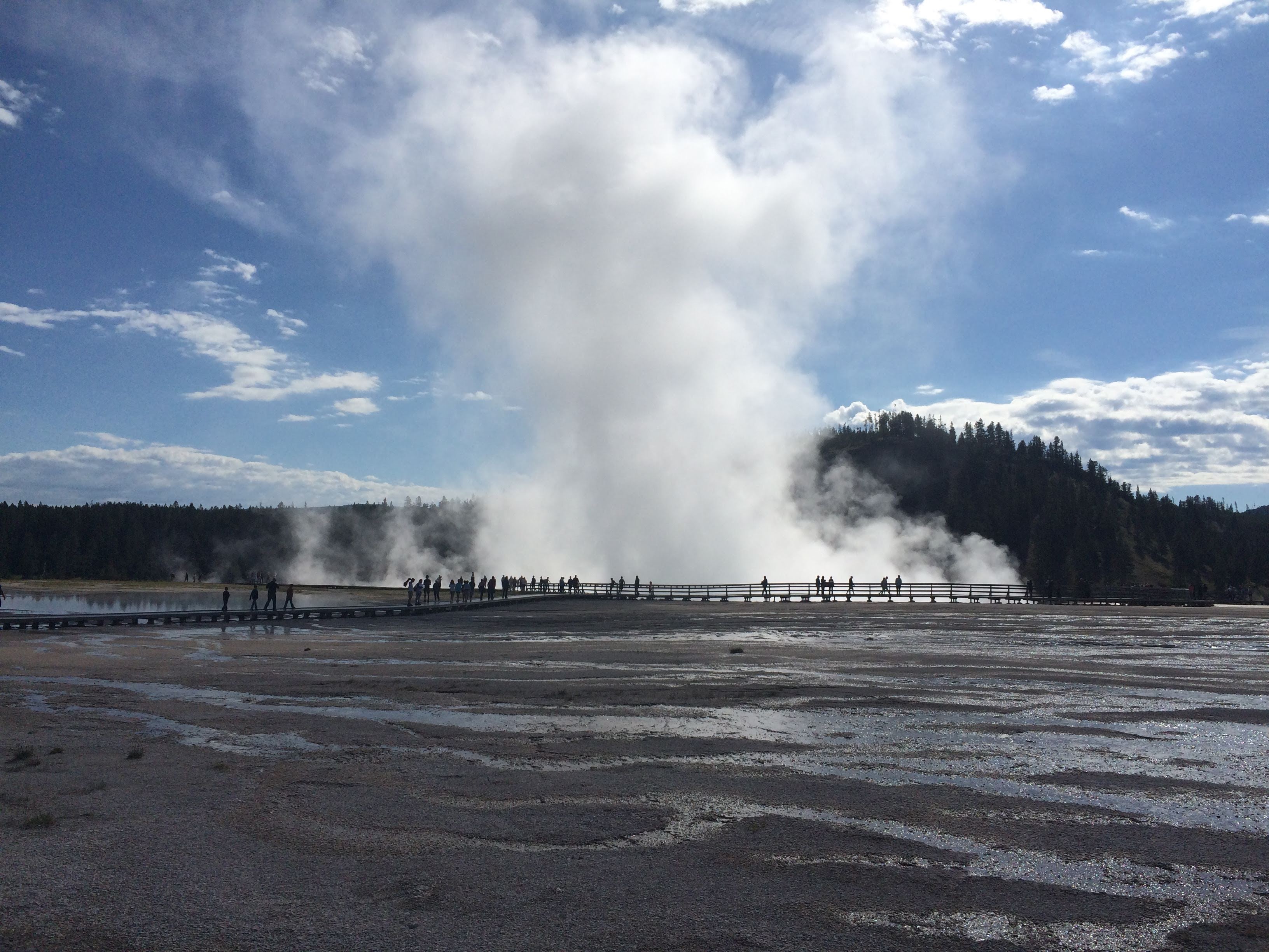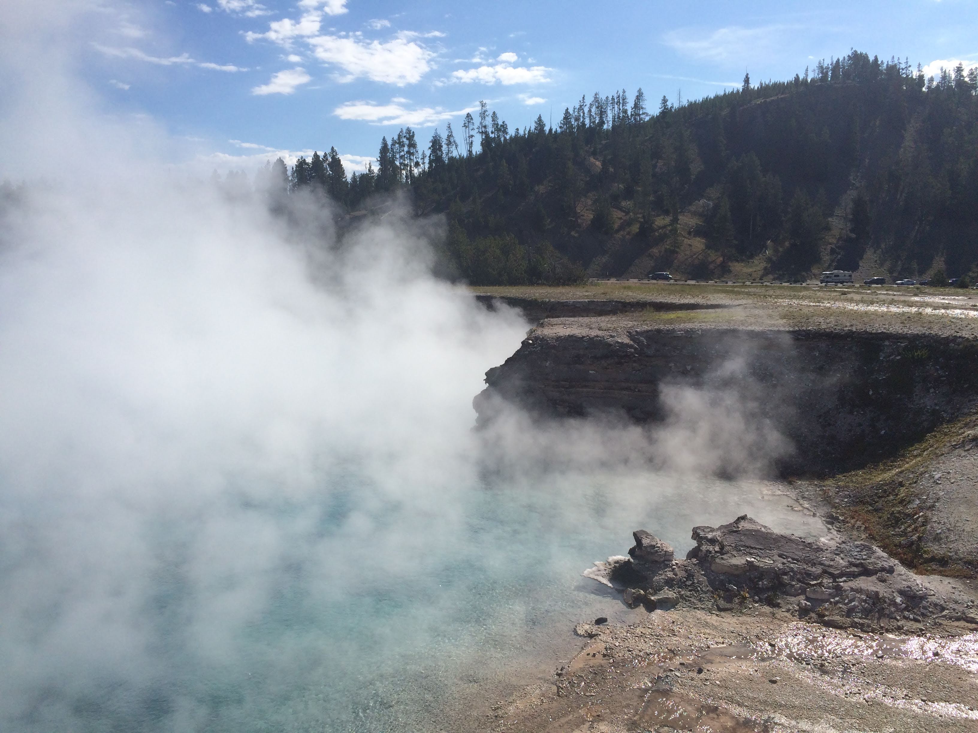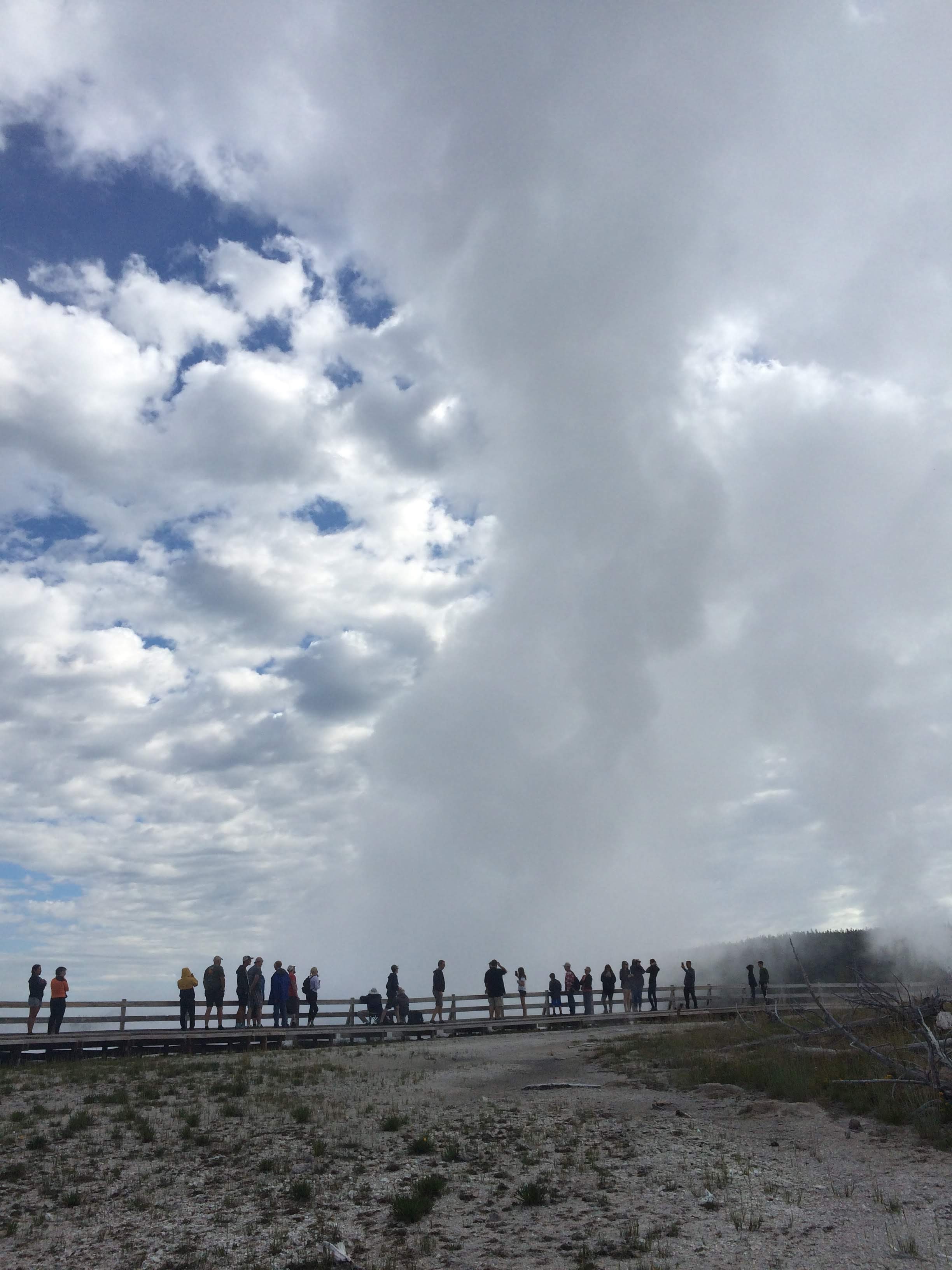Then, we stopped at Grand Prismatic Spring, where we were warned by another visitor: “Don’t even try to stop at Old Faithful! There is no parking anywhere!”