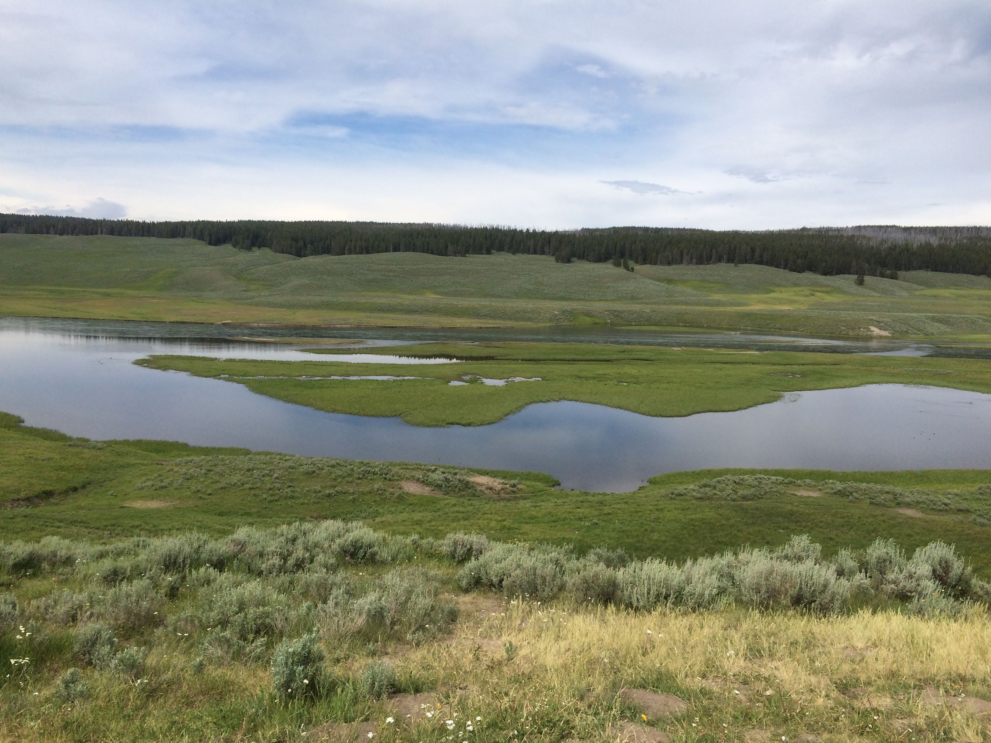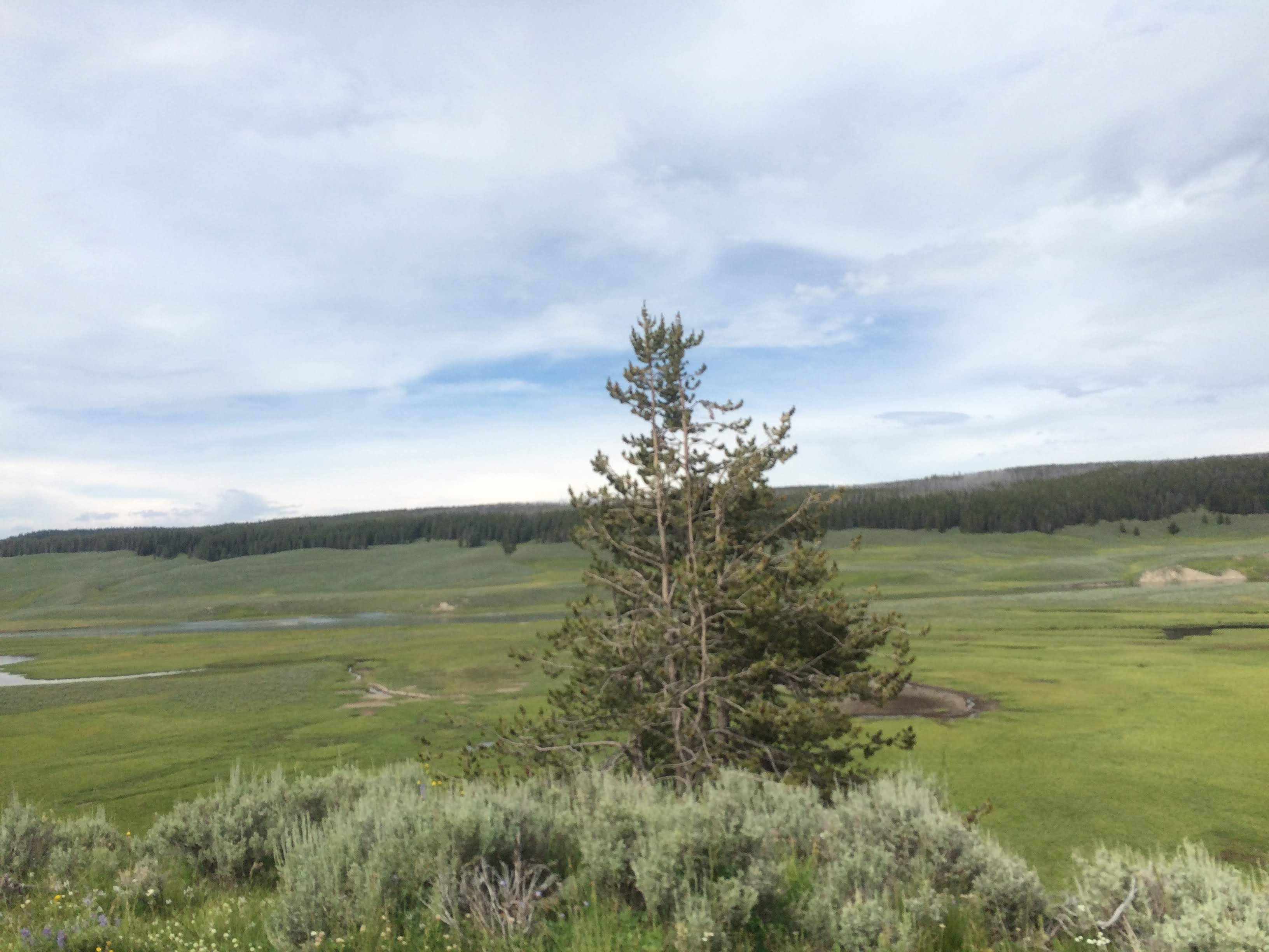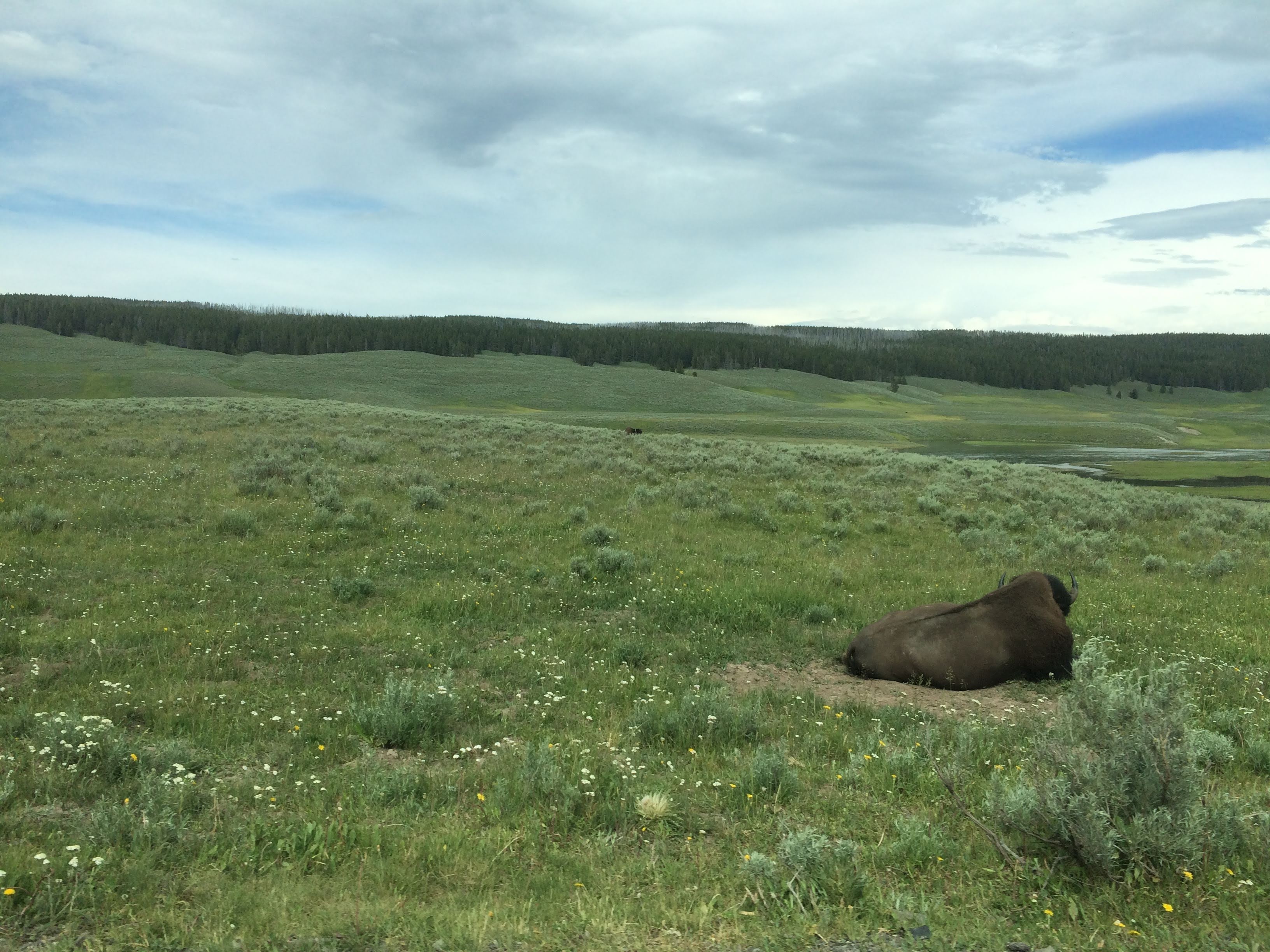While we could see Mud Volcano from our car, we had had enough hydrothermal experiences for the day at that point and just drove past. Instead, we enjoyed the peace and quiet in the Hayden Valley, where we spotted several bison (or “beefalos” as Ryan calls them). We were impressed by how vast and open this area was. Definitely not something that can be captured in a photograph!