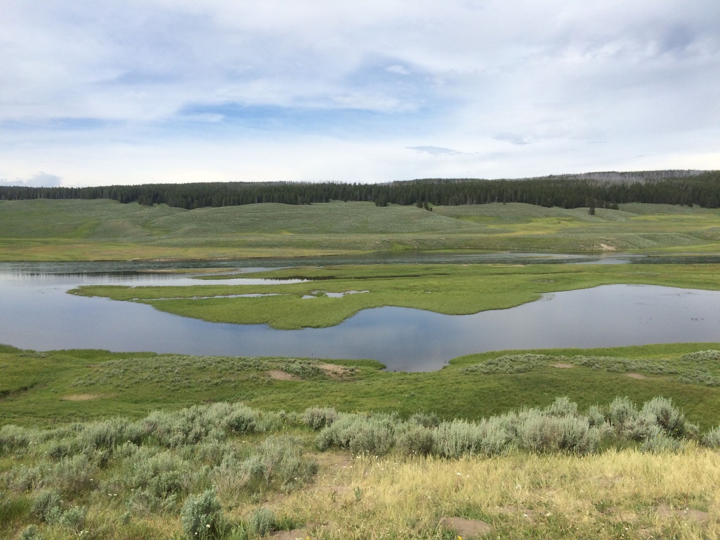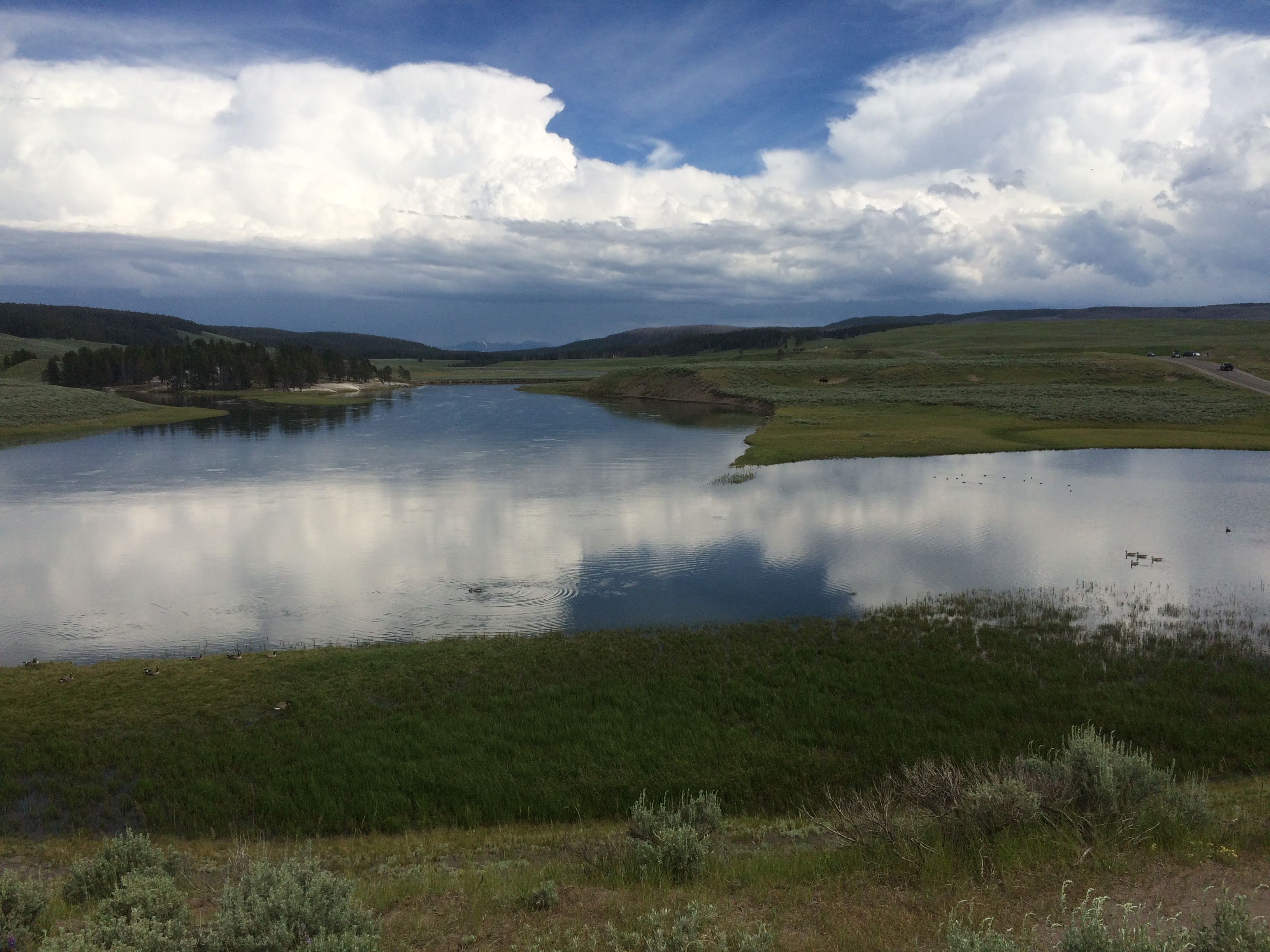 As we headed away from the majority of the major hydrothermal features, we crossed the Continental Divide and soon came to Yellowstone Lake. At this point, it was much less crowded than around the geyser basins.