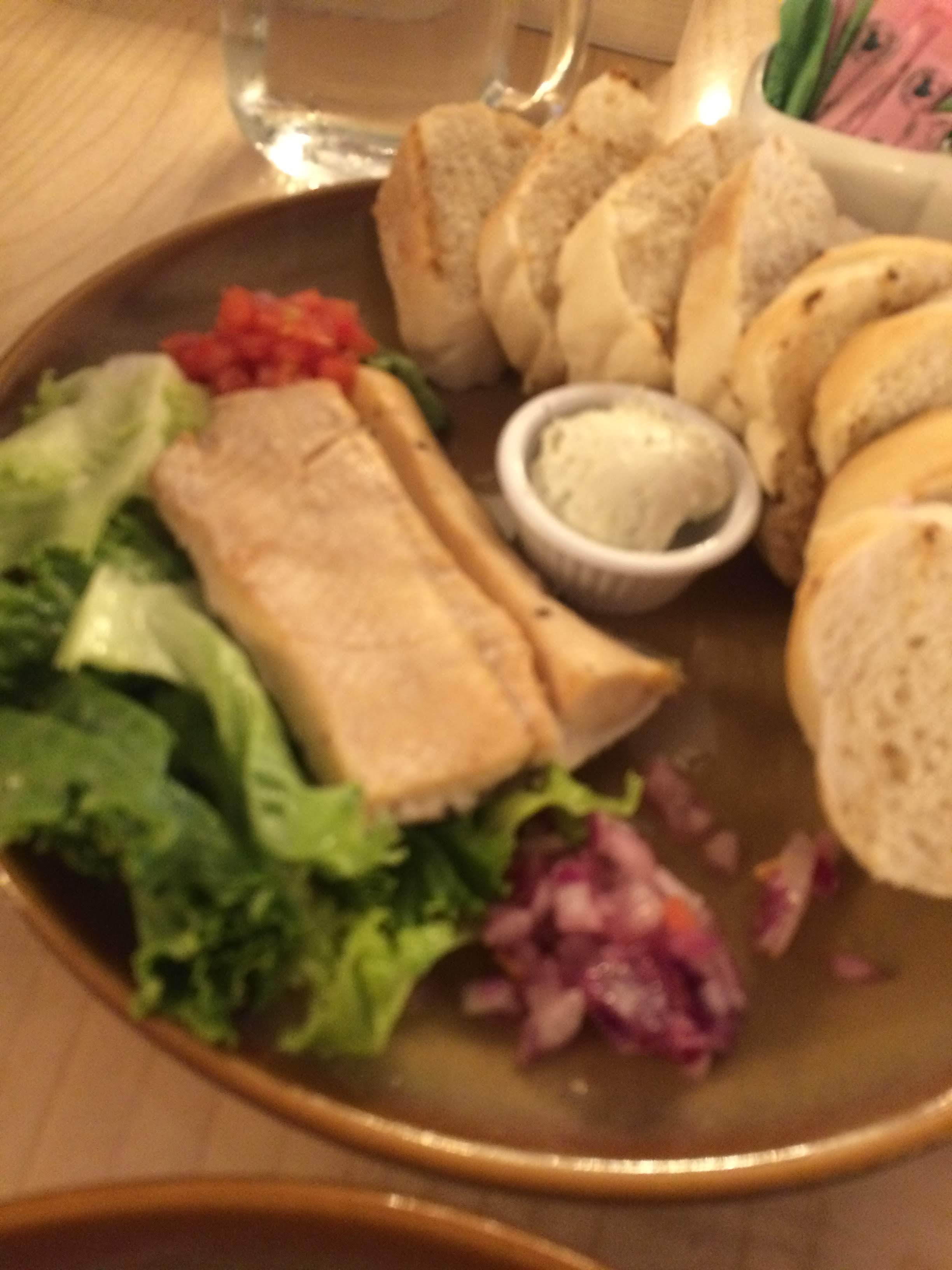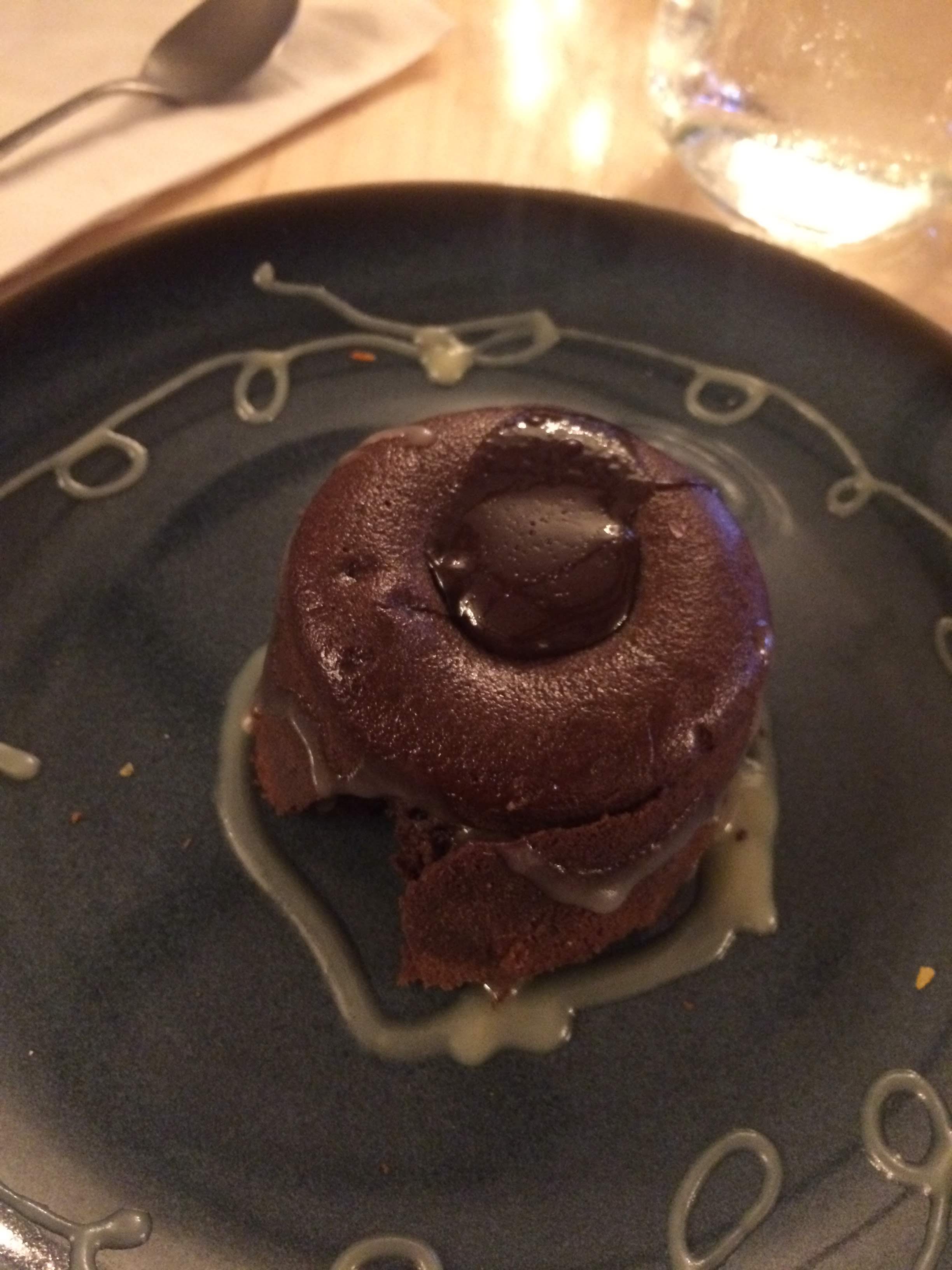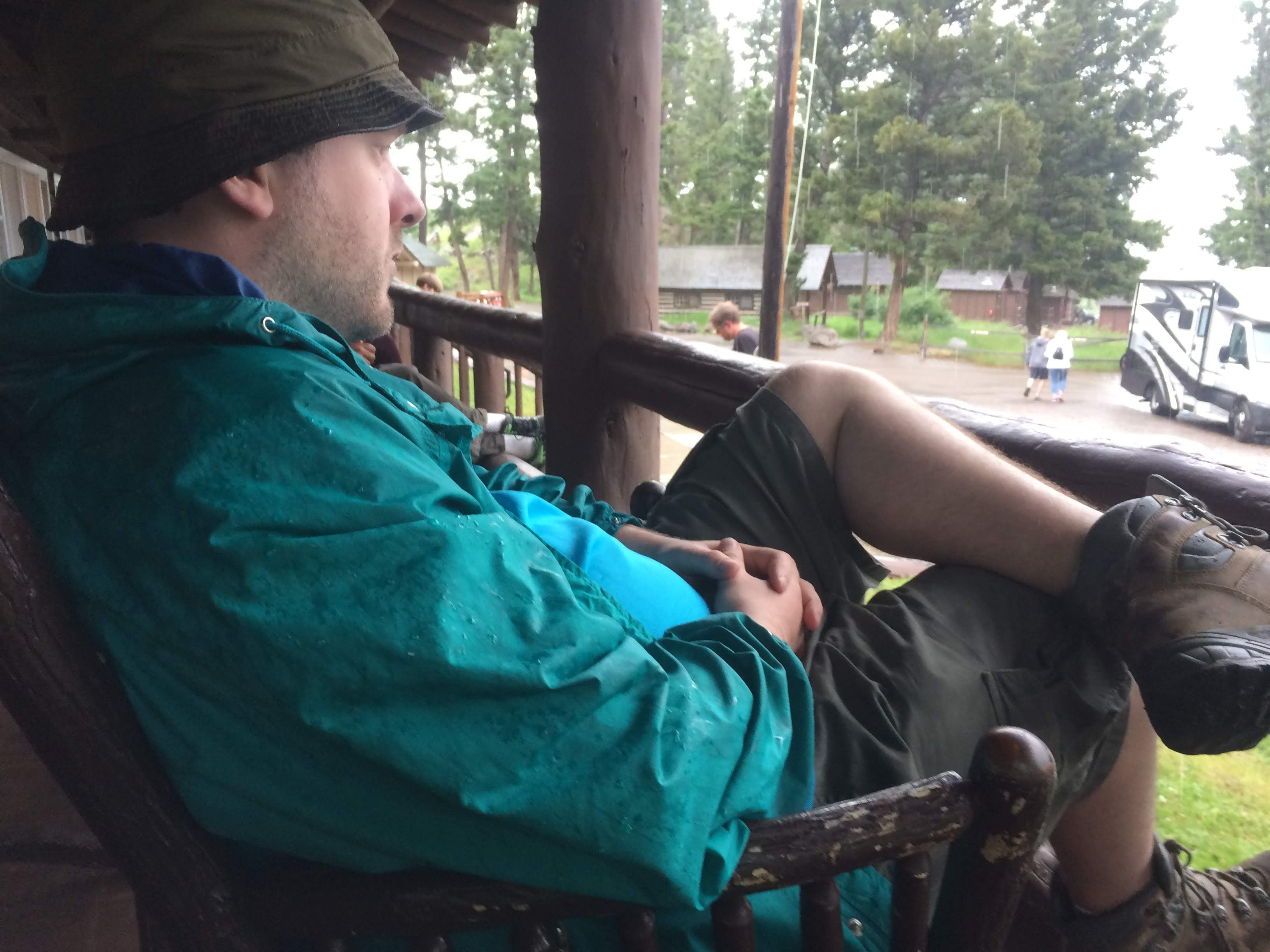 I ordered the Blue Corn Tamales, and Ryan ordered a Bison Burger. I have to say, we were a bit disappointed in our food, especially for what we paid for it. My tamales were a bit dry. Ryan’s burger was fine, but expensive. Dessert was good. I had the chocolate lava cake, although it had some fancy name like “geyser cake” or something, and Ryan had the huckleberry cheesecake. We were happy to have our own bathroom in the cabin (not all did) so we wouldn’t have to run through the rain to go to the bathroom at night.