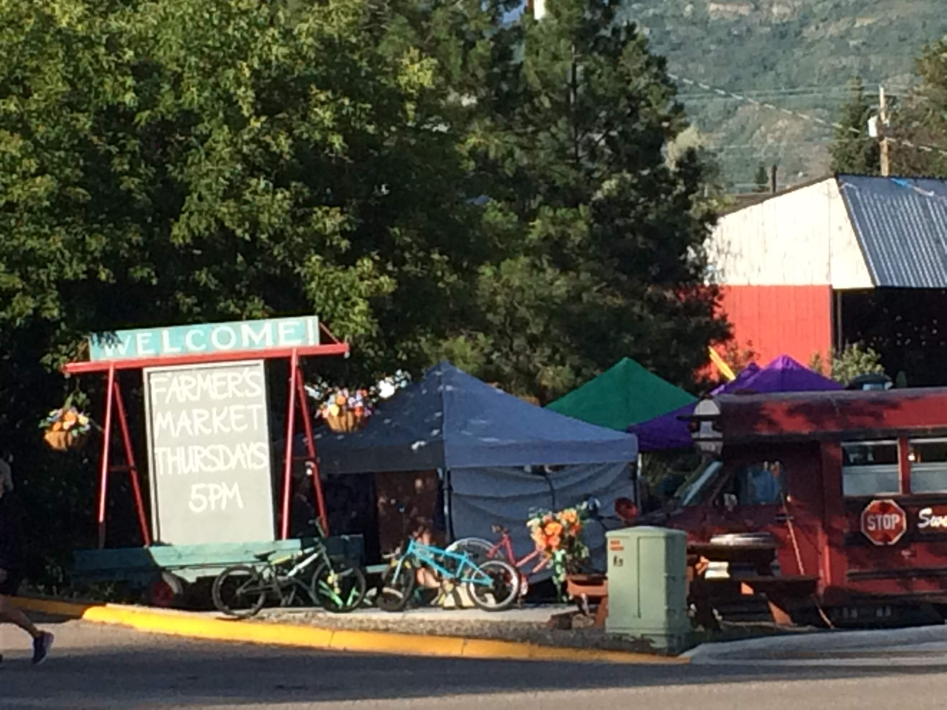 Back at the hotel, we needed to start thinking about dinner. So far, we hadn’t been too impressed by much of the food in Montana. The receptionist at the hotel had mentioned that there was a farmer’s market across the street every Thursday…and today was Thursday! Perhaps there would be some food there we could get.