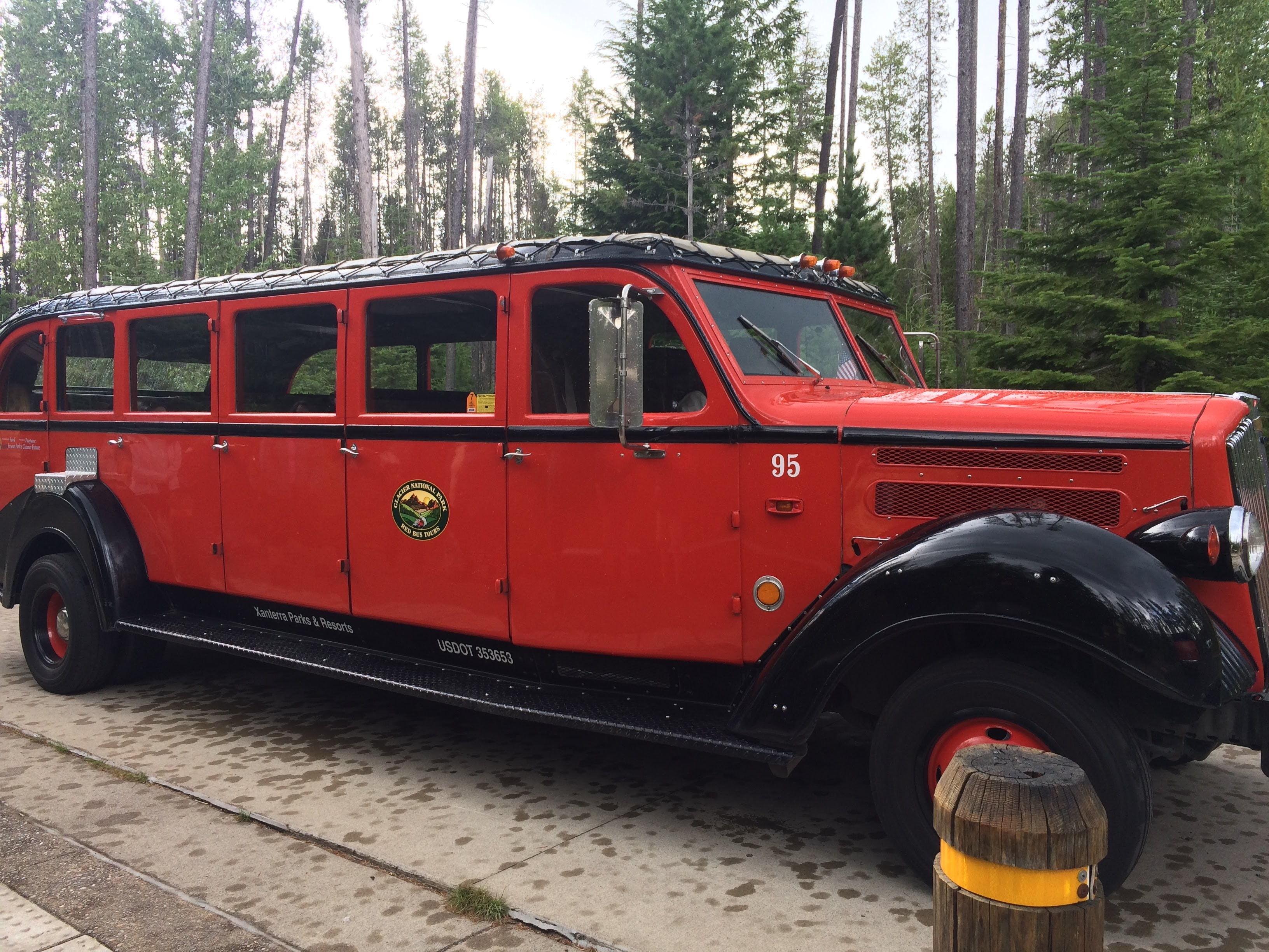 After lunch, it was time for our tour on the Red Bus. These historic buses have been around since the 1930s (although with slight updates). There are a few reasons we chose to do the Red Bus Tour. First, we wanted to go on the Going to the Sun road, but the drive sounded a bit annoying to do ourselves. It’s pretty steep, narrow, and windy, so it would be difficult for the driver to enjoy the scenery. Next, the red buses have roll-back tops, so it is supposed to be easier to enjoy the scenery. Finally, the driver is able to give us information about the park as we go.