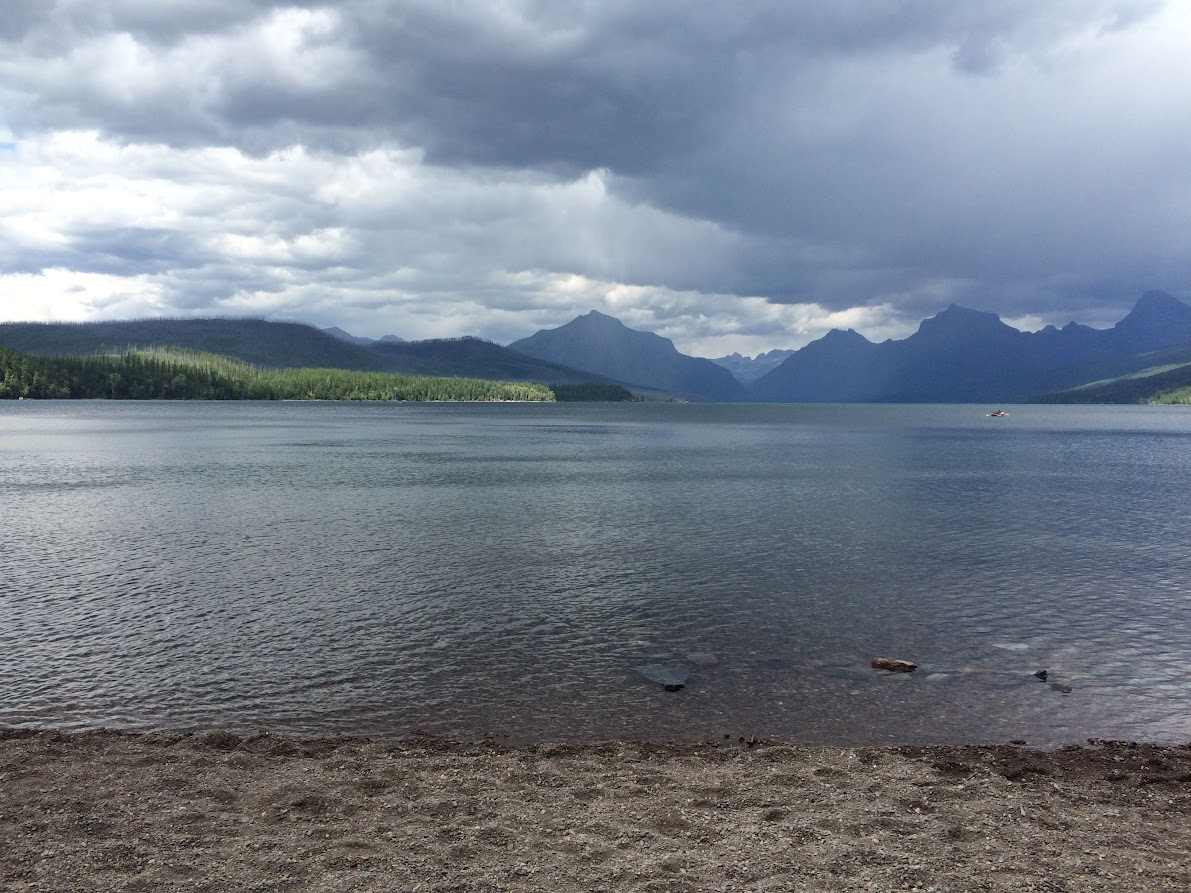 We parked at the Apgar Welcome Center, then took a short walk to take a look at Lake McDonald. We noticed there were kayaks available for rent, and decided that might be a good plan for the following morning. Ryan’s ankle was a bit sore from our long hike the previous day, so doing something that didn’t require much walking seemed like a good plan.