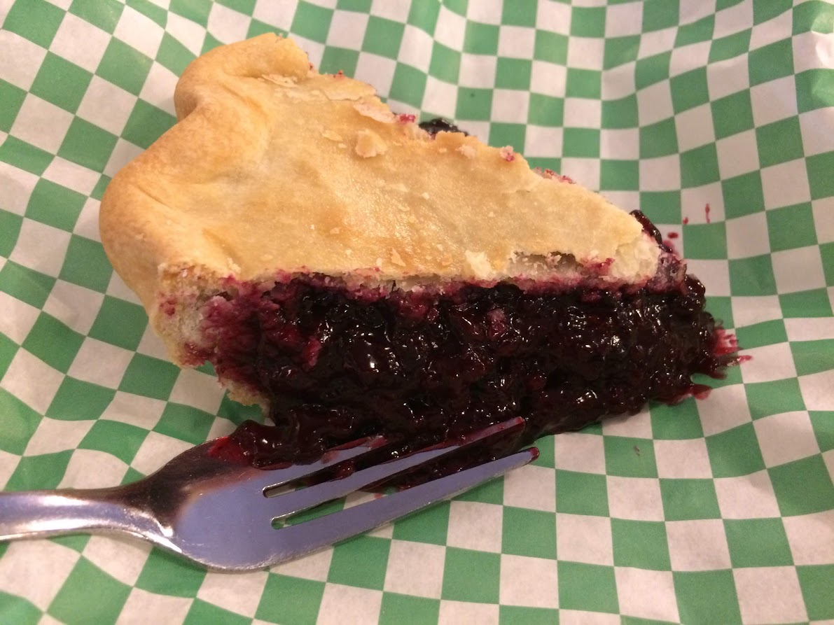 Now it was time to head back to the hotel for the evening. On the way back, we stopped at one of the many country stores advertising huckleberry products. I got a slice of huckleberry pie, and Ryan had a huckleberry shake. A note about huckleberries: they only grow in the wild in specific parts of the northwest United States and Canada. They have never been successfully cultivated. Visitors to Glacier National Park are permitted to pick up to one quart of huckleberries per person per day. They are also a favorite of black bears and grizzly bears, and have often also been used for medicinal purposes by indigenous people in the area. They look and taste kind of like a small, tart blueberry.