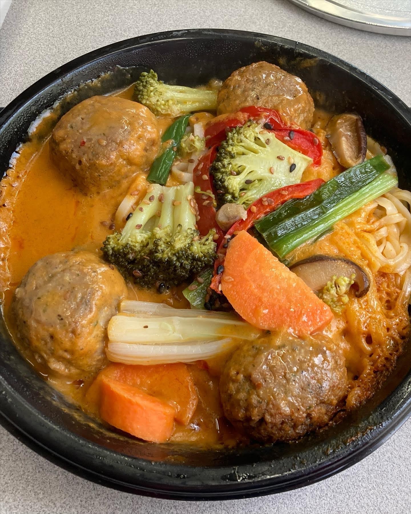 During lunch on the train, the attendant allowed the four of us to sit together in the snack car so we could chat. This time I had the Thai Red Curry Street Noodles, which was probably one of the best choices. Ryan had the Baked Ziti and Meatballs and said it was only ok.