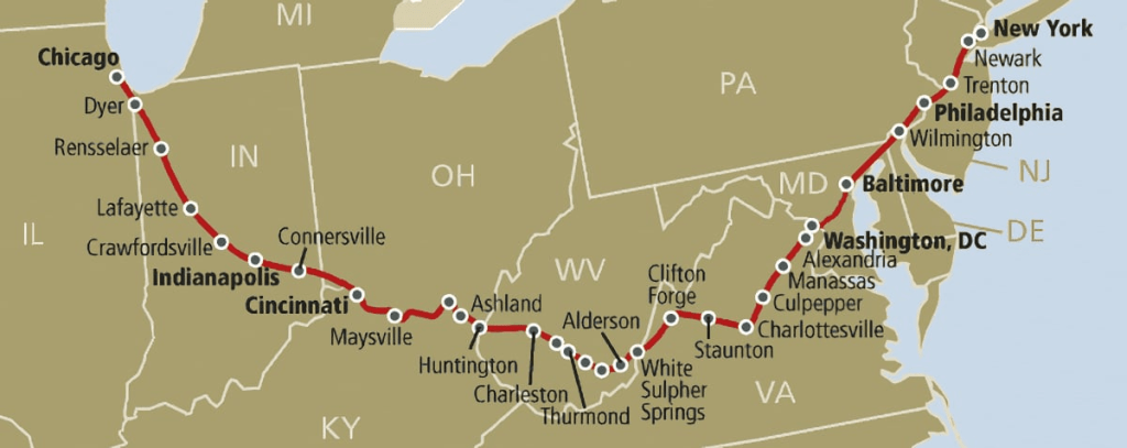 The Cardinal starts in Chicago and ends in New York, but we were only taking it to D.C. We boarded pretty late in the evening, so it was soon time to sleep, which meant we were mostly asleep through Indiana.