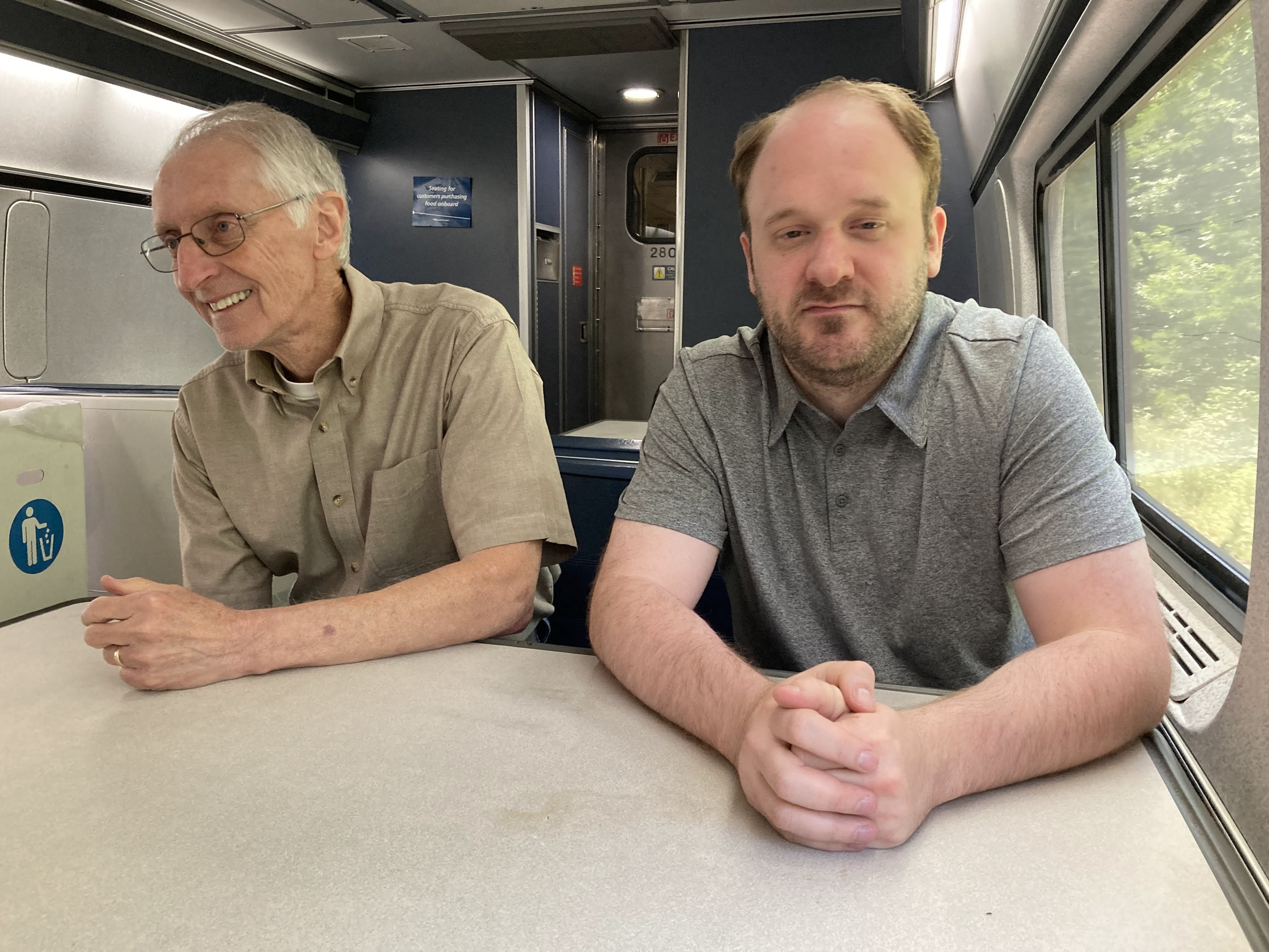 On the train, we found our rooms to settle in. Ryan and I were in a “roommette,” which is the most basic kind of sleeper accommodation on an Amtrak train. It has two seats directly across from each other and a small table in the middle. At night, the chairs convert into one bed, and an upper bunk is lowered from the wall. The roommette has a sink, but no toilet or shower. The sink actually folds down from the wall. When it is folded up, it is the steps to the top bunk.